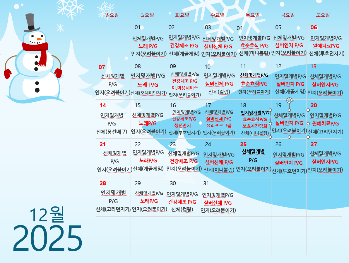 12월 주간보호 프로그램 계획표